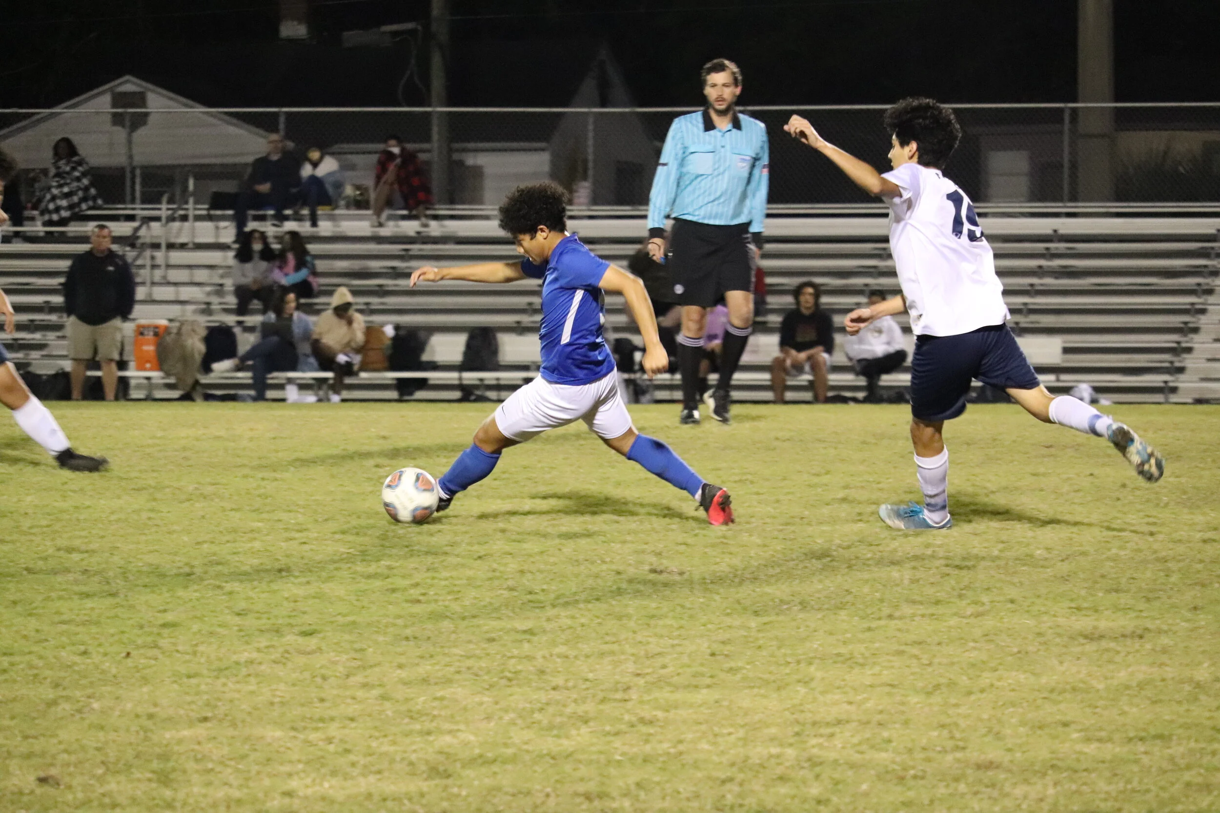 In the 54th minute, senior forward Brandon Diaz was fouled in the box, giving him a penalty kick and setting off a chain of scoring plays. Diaz scored on the penalty kick, burying the ball in the bottom right. Less than a minute later, senior defensive back Ryan Dreibelbis crossed the ball to Diaz, who headed it in for another goal. Following the ensuing kickoff, Diaz quickly took possession of the ball and scored his third goal in 90 seconds, the ball bouncing off the inside of the left post and into the net.